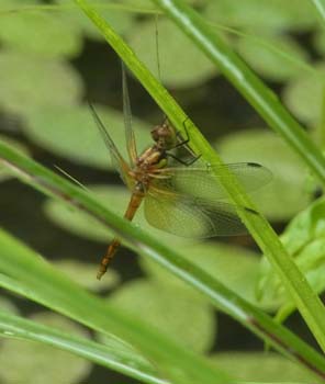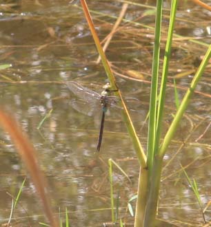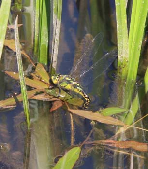 オオルリボシヤンマ ウシガエル捕獲のために設置した かにかごに産卵していました。 (2016.9.25 湿生植物園) |