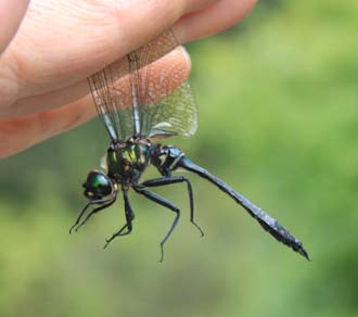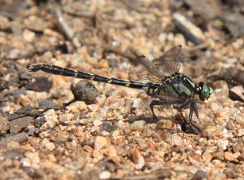 羽化したばかりのオジロサナエ 転石の多い小さな流れ脇から飛び立ちました。 (2016.6.30 虫の原っぱ) |