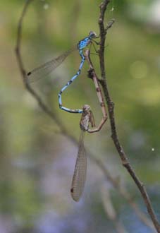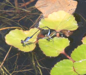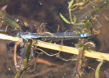 産卵するオオイトトンボ (2016.5.12 センター棟南の上池岸で) |