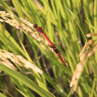 ナツアカネ 打空産卵の後、 稲穂に止まりはねを休めていました。 (2016.10.12 たんぼ) |