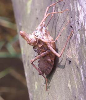 タイワンウチワヤンマの羽化殻 (2016.6.25 昆虫の森 田尻大池岸で) |