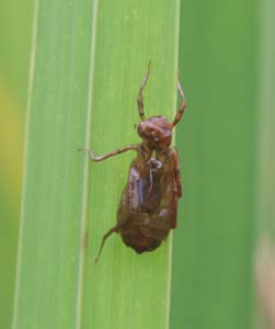 チョウトンボの羽化殻 (2016.6.12 センター棟南の上池岸で) |