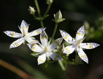 特徴 | 山地の湿地や湧き水の周辺に生える2年草 | 名前の由来 | 花冠の裂片についた黒紫の点を夜明けの空の星に見立てて。 | ||||||||||||||||